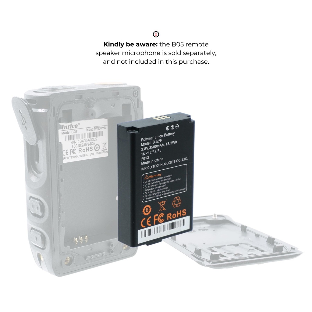 3500mAh battery only compatible with Inrico B05 Bluetooth Speaker Microphone.