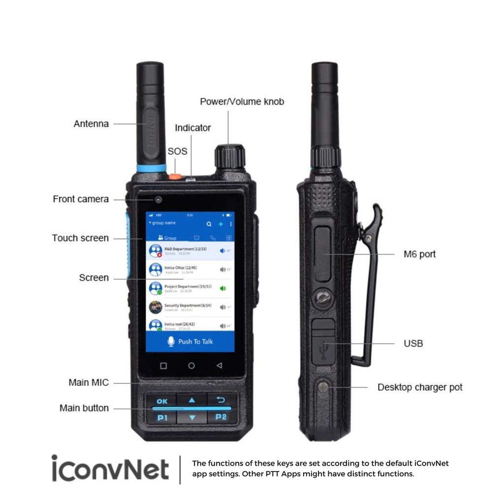 PLEASE NOTE: While other PTT apps can provide basic PTT functionality on this PoC radio, they may not unlock its full capabilities. For support with these third-party apps, please contact the respective app provider directly. We only offer support for iConvNet.